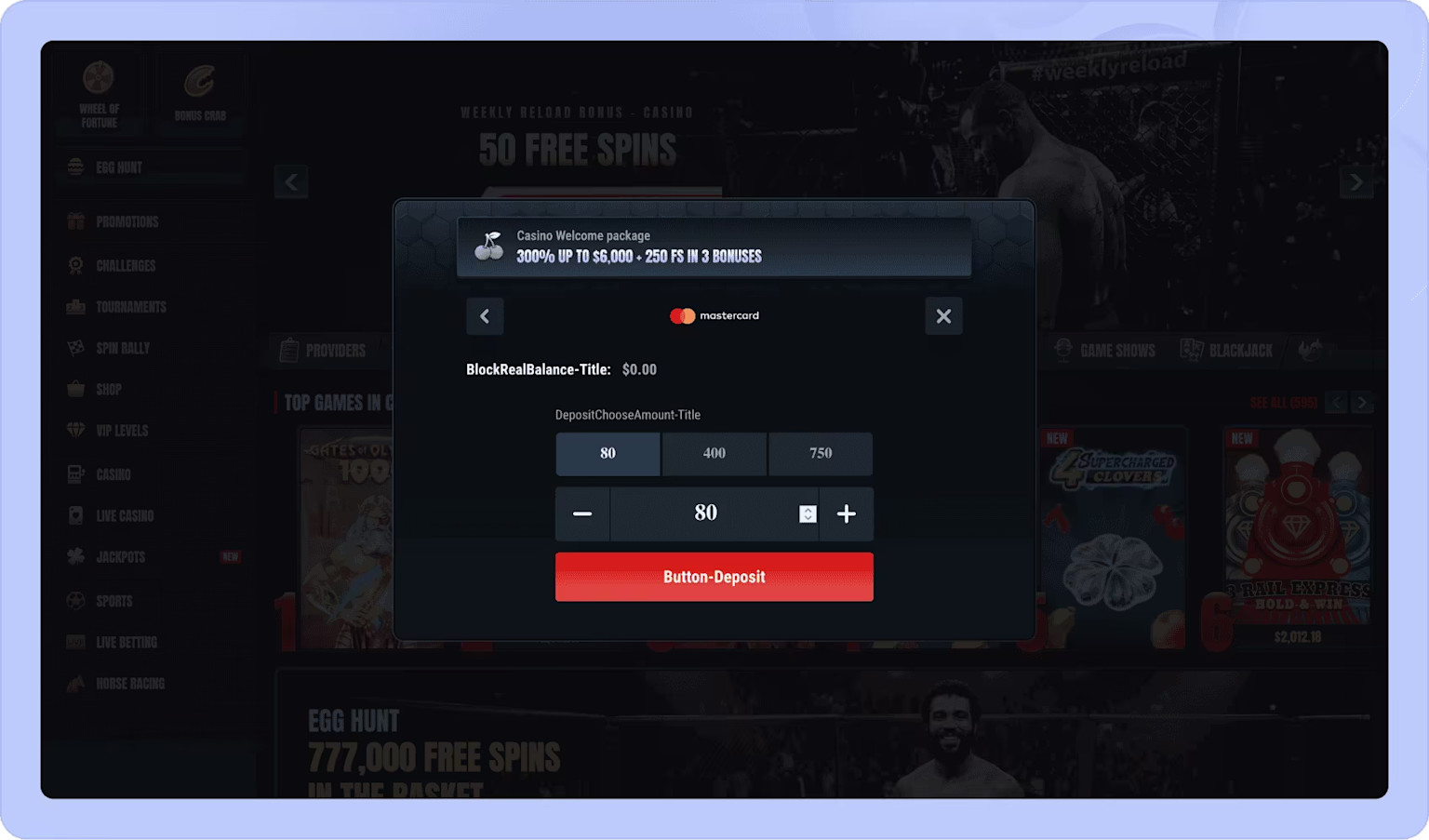 Best for lowest prepaid card depositWelcome offer 300% up to $6,000 + 250 Free Spins