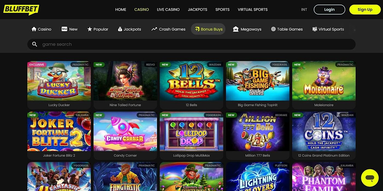 Bluffbet Casino boasts over 3,400 casino games, including popular online slot games, like Big Bass Splash, Sugar Rush and Joker Max, to name but a few.